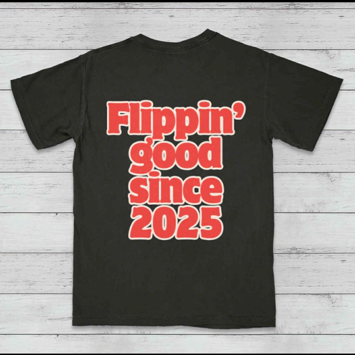 Washed out black/gray with red design and front pocket! Comfort Colors brand.